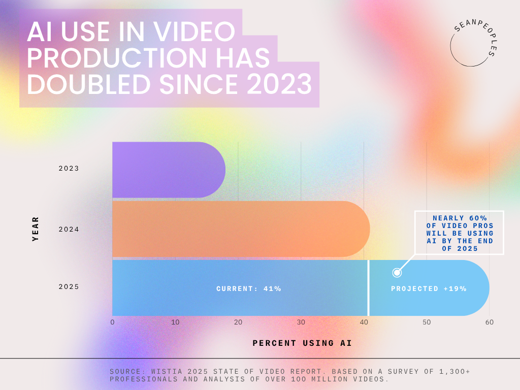 If you’re wondering how so many organizations are scaling their video output, the answer increasingly involves artificial intelligence. In 2023, only 18 percent of professionals used AI tools to create video. Today, that number has jumped to 41 percent. And by the end of 2025, nearly 60 percent of video teams are expected to be using AI for scripting, editing, dubbing, or distribution.